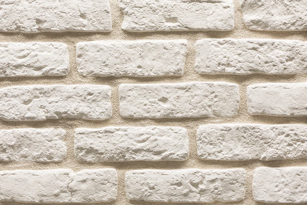 Плитка Феодал Кирпич Средневековый 05.00.Р, шов 12, Белый Матовый Декоративный кирпич 5,8-6,6x20,4-22 см