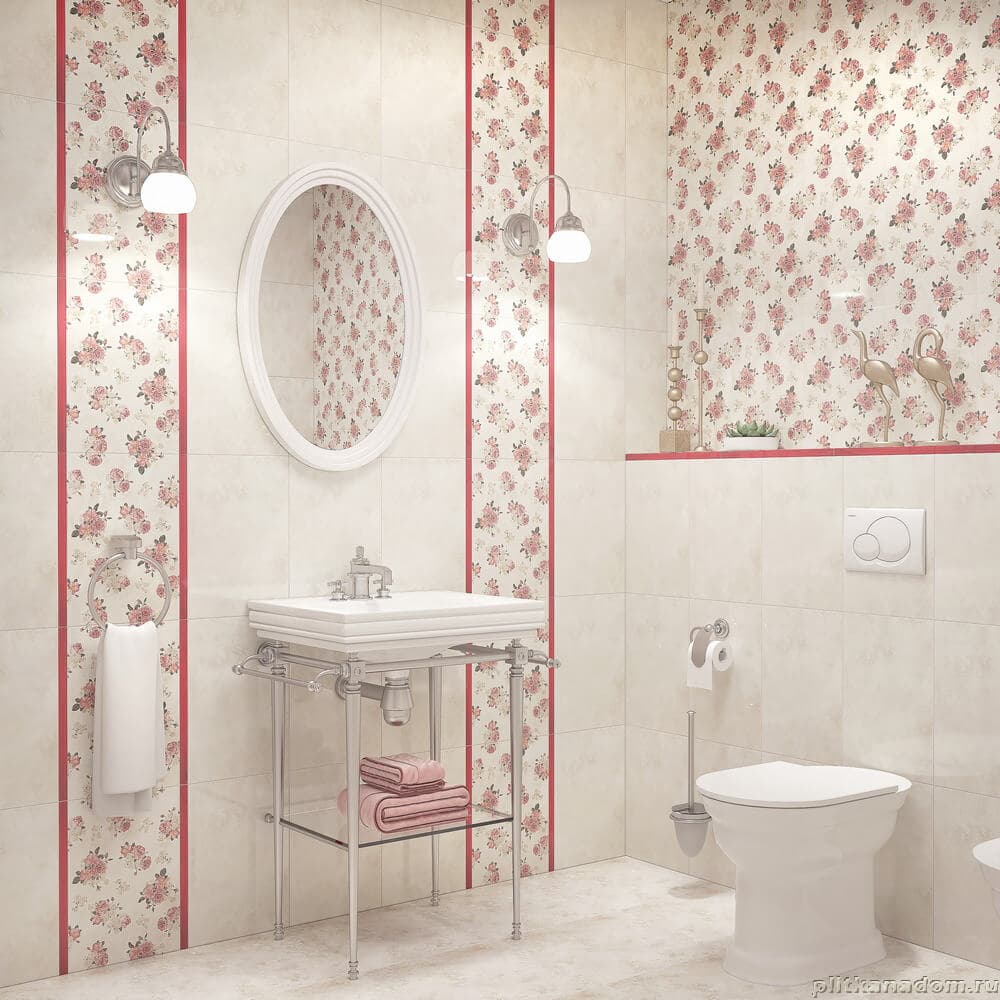 Коллекция белорусского производителя Керамин Дубай создана для аристократических интерьеров. В основе дизайна романтический цветочный принт, исполненный в нежных розовых оттенках. Рисунок цветов настолько нежный, что, кажется он, создан из сотни тонких золотистых нитей. Классический рисунок создает неповторимую камерную атмосферу уютного салона.