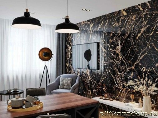 Плитка Orinda Marquina Gold High Glossy Черный Глянцевый Керамогранит 60x60 см