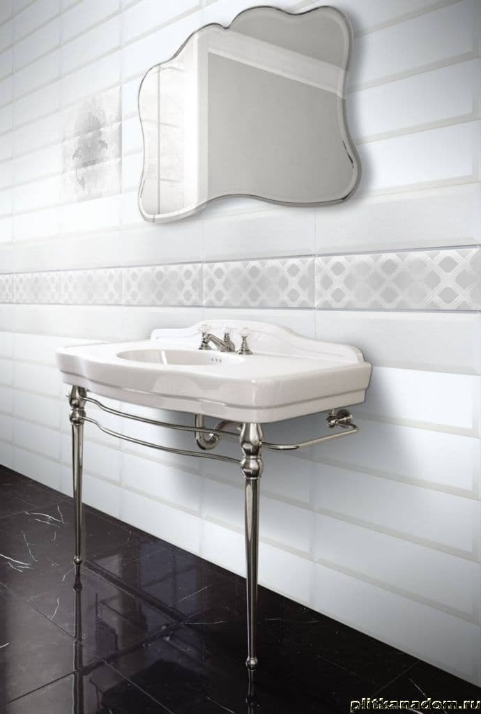 Плитка Vintage создана в формате 15х45 см, это позволяет экспериментировать с укладкой, зонировать пространство. Нежная пастельная гамма создает домашний уют, а золото декоров наполняет атмосферу роскошью дворцов французской знати.