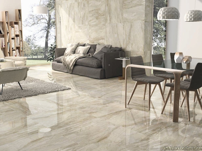 Изысканная коллекция APE Ceramicas Gio завораживает всех поклонников классического стиля. Базовая плитка имитирует текстуру бежевого мрамора со сложным рисунком, созданным переплетением прожилок и эффектных включений. Гладкая плитка дополнена рельефными декорами, которые воспроизводят резные панели. Для вертикального зонирования предусмотрены бордюры в стиле барочной лепнины.