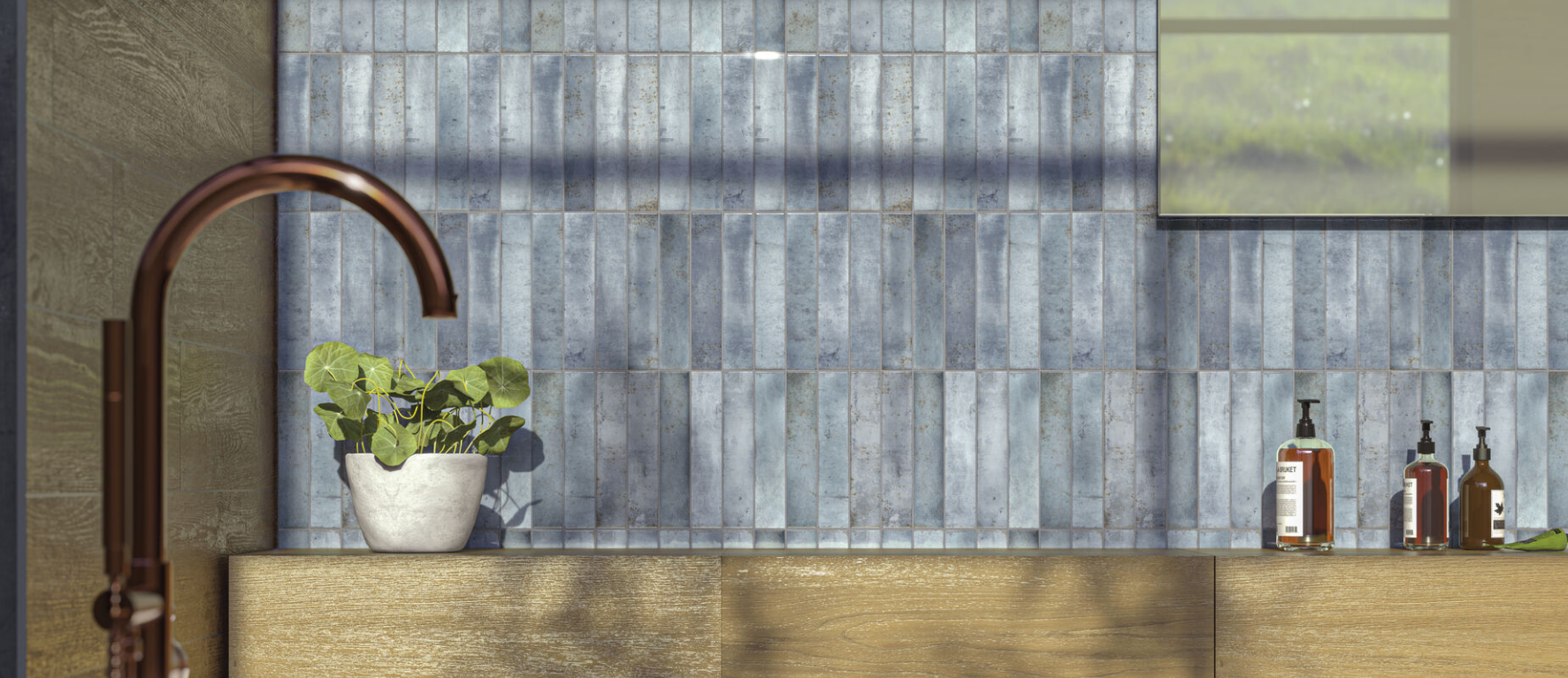 Плитка Cifre Nautalis Turquoise Brillo Голубая Глянцевая Настенная плитка 5x25 см