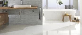Керамогранит Мрамор выпускается в формате 40х80 см. Глянцевая поверхность усиливает эффект роскоши. Графитовая палитра универсальна и может использоваться в проектах индустриального стиля, а бежевая плитка наполнит уютом классический проект.