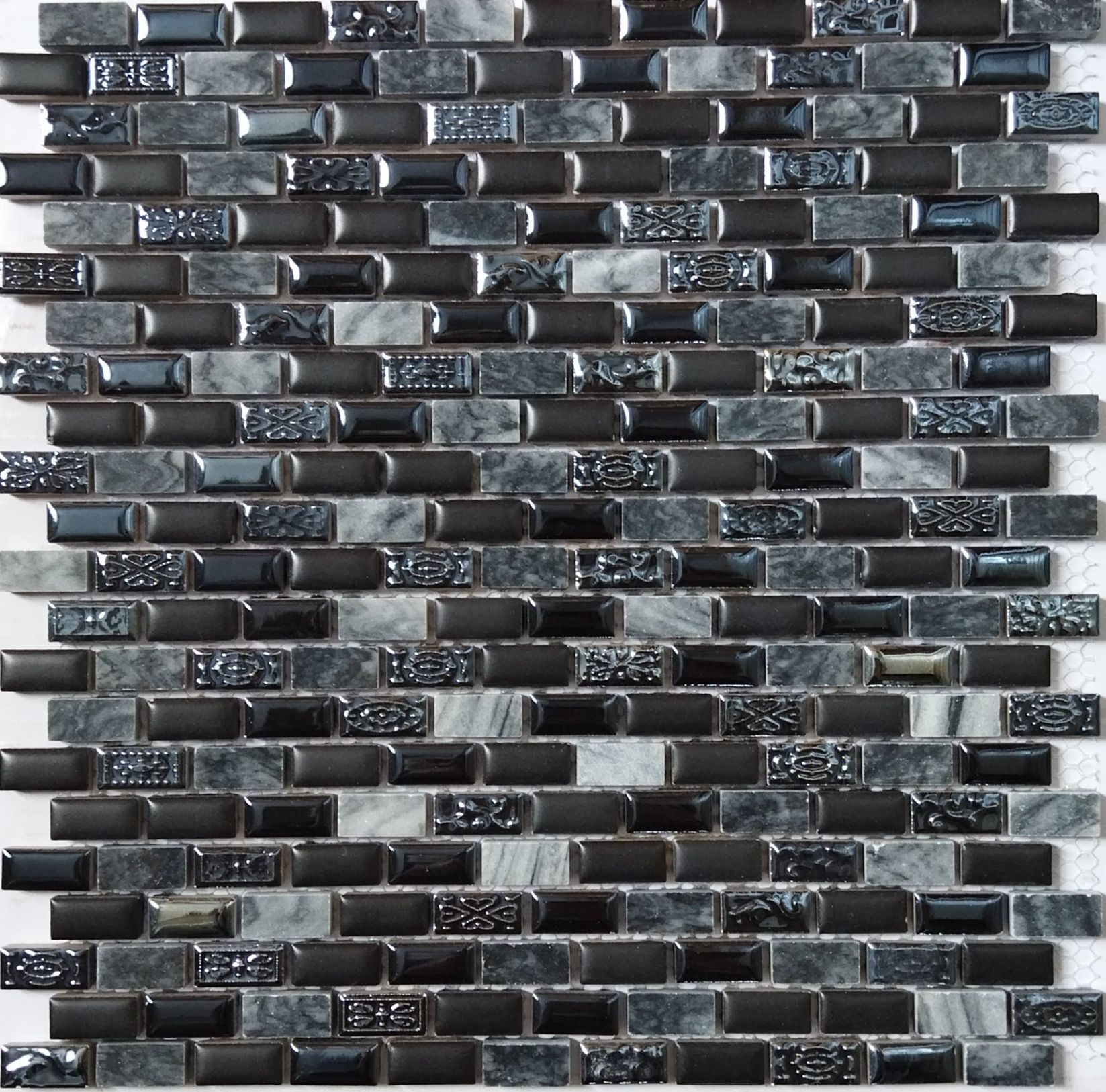 Плитка Tonomosaic Мозаика из керамики 112 Серая Глянцевая Мозаика 30х30 (1,2х2,5) см