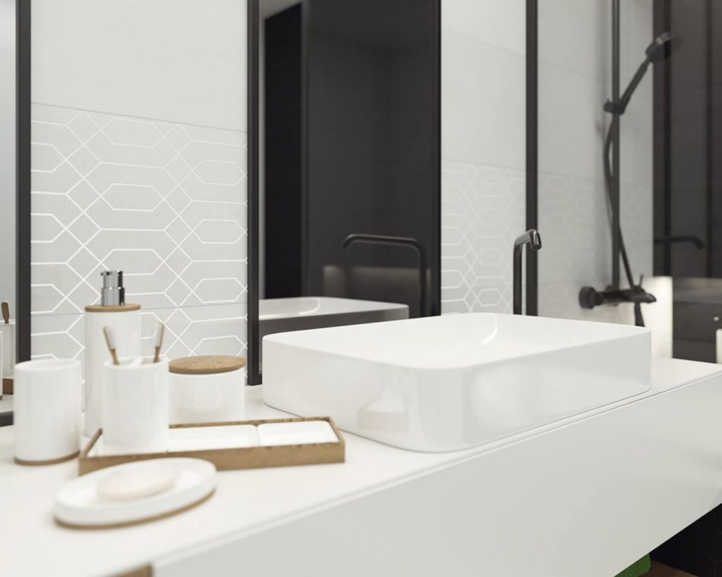Коллекция польской компании Paradyz Taiga создана для интерьеров в неоклассическом стиле. Базовая настенная плитка предлагается в двух вариантах: имитация текстуры черного ясеня и бетона. Дополняется облицовочный материал элегантными вставками с геометрическим рисунком, которые визуально меняют пространство.