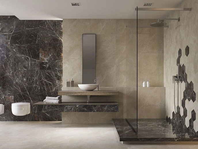 Универсальная коллекция Paradyz Tosi предназначена для пола и стен, оформлена в бежевой и темно-коричневой цветовой гамме. Комплект включает прямоугольные и квадратные модули. Торцы плиток прошли ректификацию. Отдельными позициями представлены декоры шестигранной формы. Керамогранитное покрытие имеет глянцевую/ матовую поверхность с имитацией мрамора.