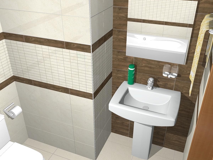Основной размер для коллекции Enna 22,3х44,8 см, базовая плитка дополнена широкими и узкими бордюрами, мозаикой. Сочетание матовой и глянцевой поверхности придает интерьеру необычный характер.
