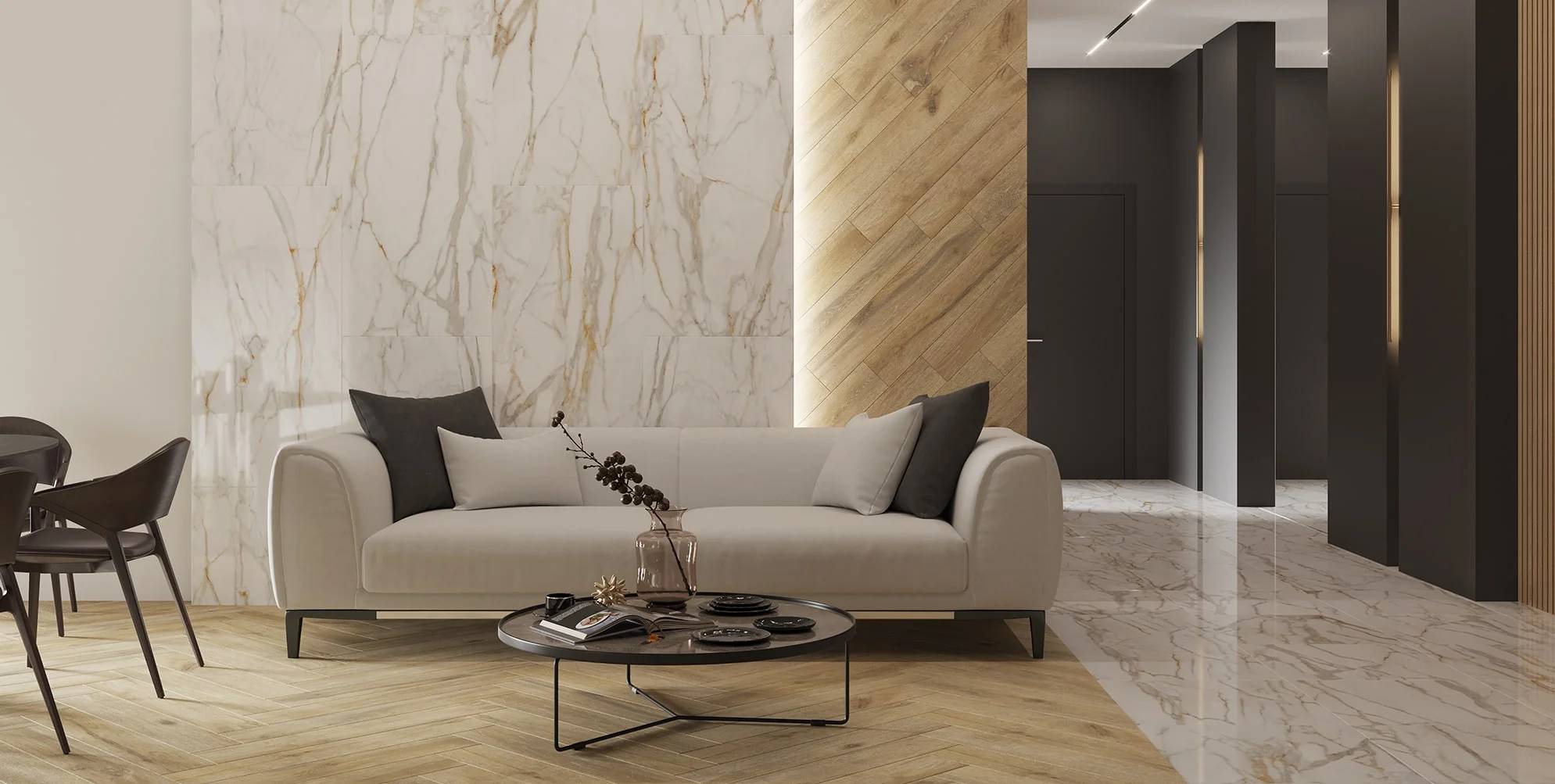 Плитка Ametis Supreme SM02 Gold Trail Белая Полированная Фальшмозаика 19х120 см