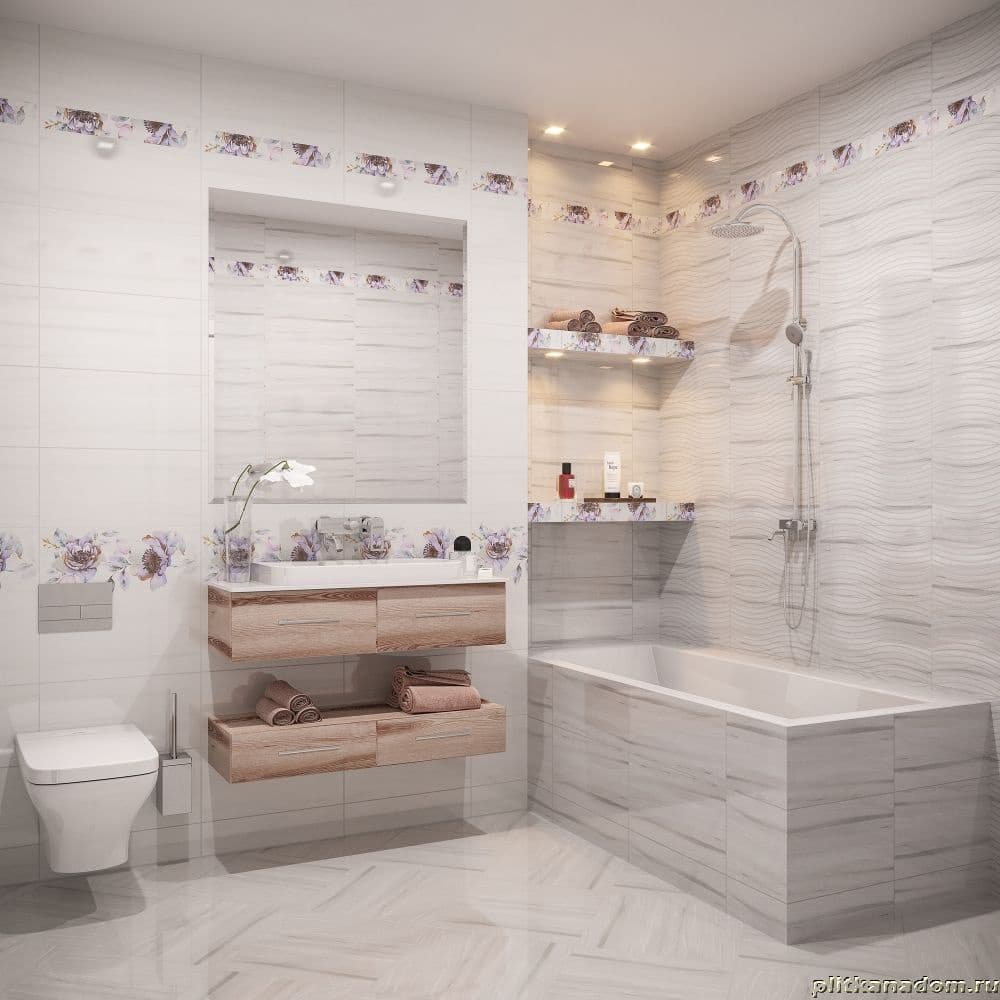 Разнообразие форматов: Плитка доступна в различных размерах, что позволяет легко интегрировать её в интерьеры любых масштабов – от уютных ванных комнат до просторных гостевых зон.