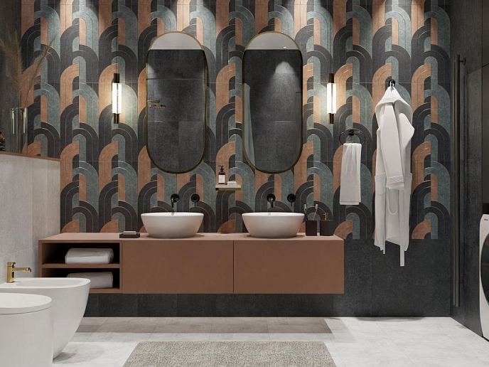Цветовая палитра коллекции варьируется от теплых песочных и кремовых оттенков до глубоких приглушенных тонов, которые создают уютную и расслабляющую атмосферу. Каждый оттенок подобран так, чтобы подчеркивать природную текстуру и мягкость пространства, будь то гостиная, ванная комната или кухня.
