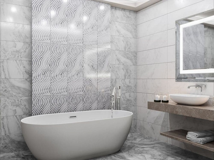 Поверхность плиток идеально сбалансирована между матовостью и легким глянцем, что придает им особую глубину и игру света. Тонкие текстурные узоры, напоминающие натуральный камень или мягкие тканевые мотивы, создают эффект ручной работы и добавляют интерьеру неповторимый шарм.