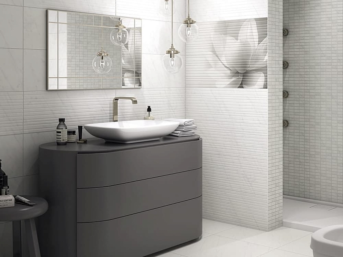 Модульность коллекции позволяет комбинировать плитки различных форматов, включая стандартные прямоугольники и квадратные элементы. Размеры продуманы так, чтобы легко адаптироваться к пространству любой планировки, от уютной ванной комнаты до просторной гостиной.