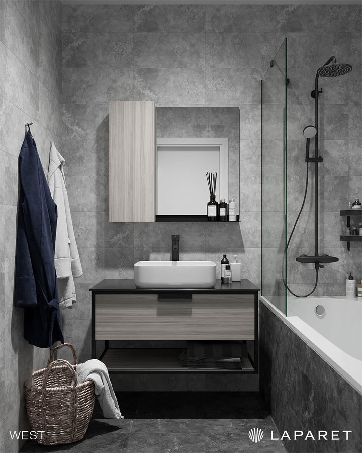 Плитка Laparet West 34084 Темно-серая Матовая Настенная плитка 25х50 см