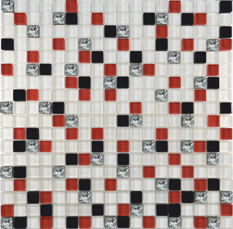 Плитка Росмозаика Мозаика стеклянная № 458 Микс белый-красный-черный-платина Мозаика 30х30 (1,5х1,5) см
