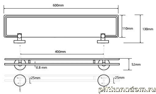 Bemeta Trend-i 104102208b Cтеклянные полки с рельсами 60, чёрная основа