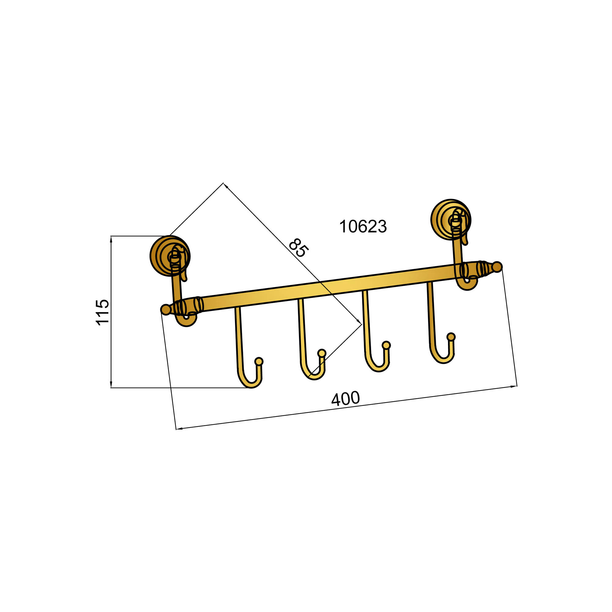 Boheme Medici 10623 Крючок четверной, бронза