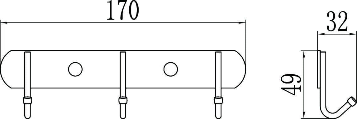 Планка с крючками (3 крючка) Savol S-00303X