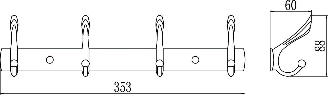 Планка с крючками (4 крючка) Savol S-00114B