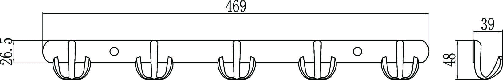 Планка с крючками (5 крючков) Savol S-002255