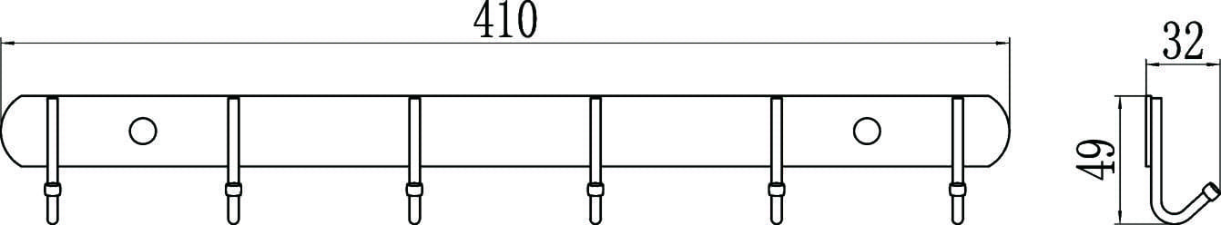 Планка с крючками (6 крючков) Savol S-00606X