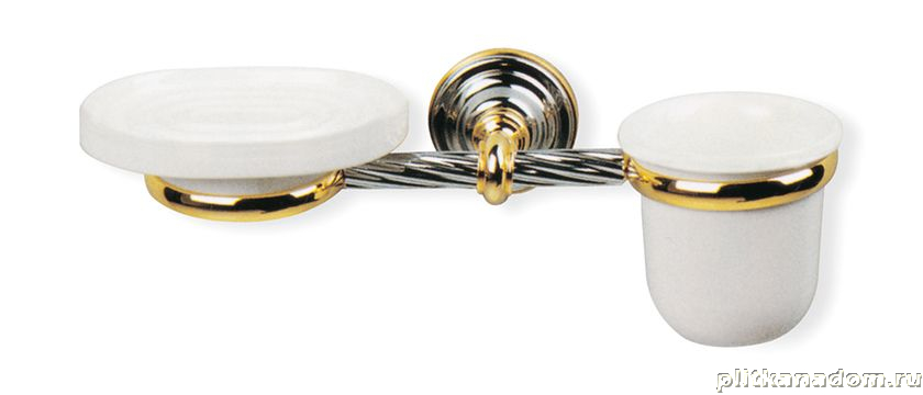 Stil Haus Giunone, настенные керамические мыльница + стакан, белый - золото, G14(04)