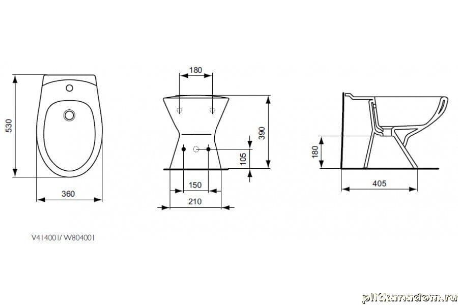 Ideal Standard Eurovit W804001 Биде напольное, 1 отверстие под смеситель, без крепежа