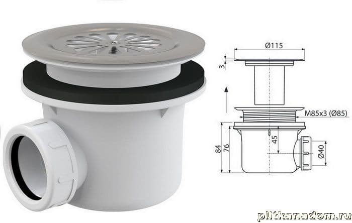 Alca Plast A48 Cифон для душевого поддона с нержавеющей peшeткой