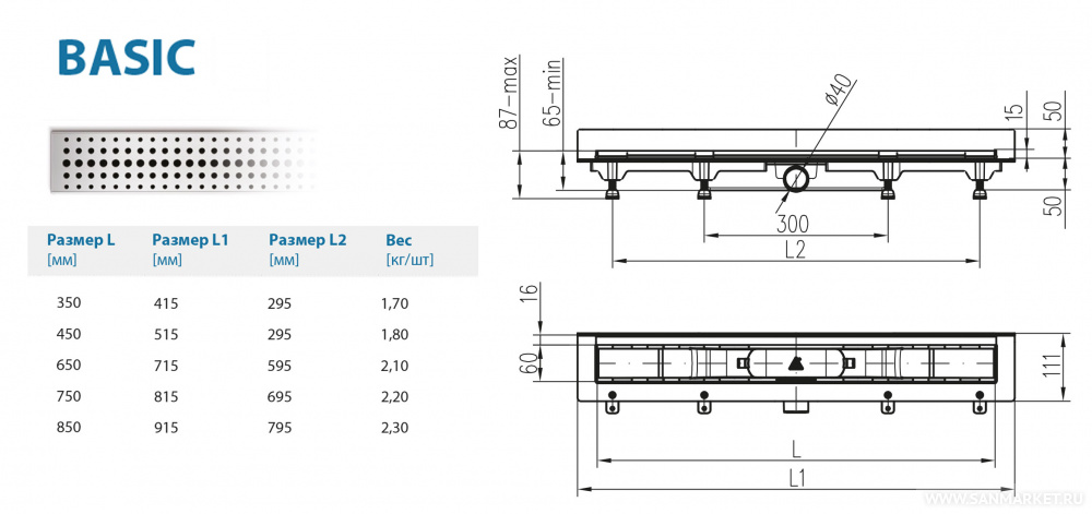 Водоотводящий желоб Alpen Basic ALP-450BN3 к стене с рамкой