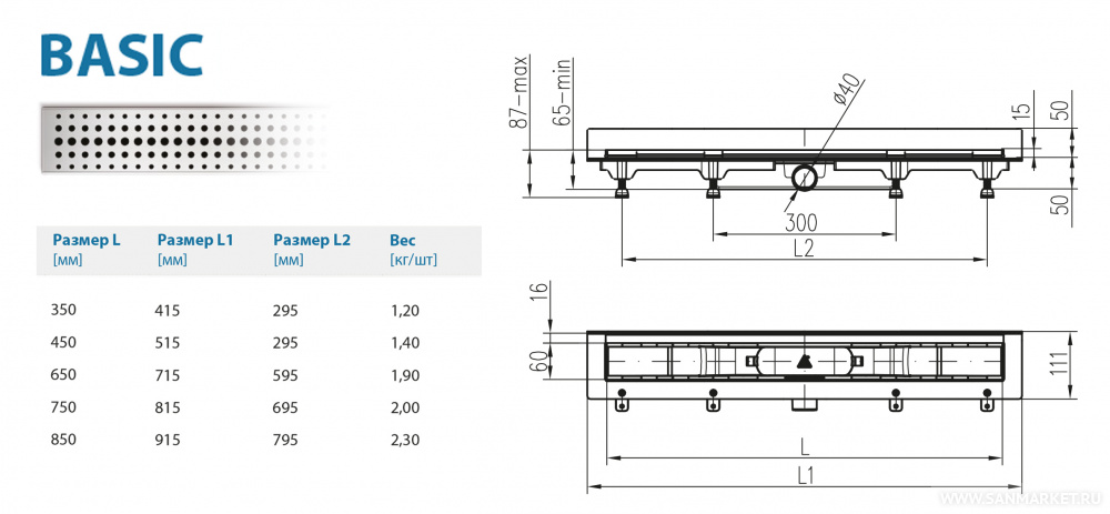 Водоотводящий желоб Alpen Basic ALP-650B2 для монтажа вплотную к стене