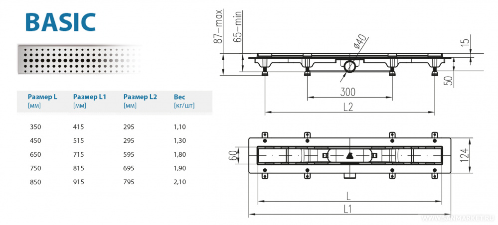 Водоотводящий желоб Alpen Basic ALP-850B1