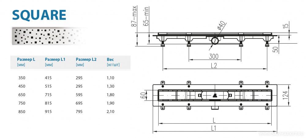 Водоотводящий желоб Alpen Square ALP-850S