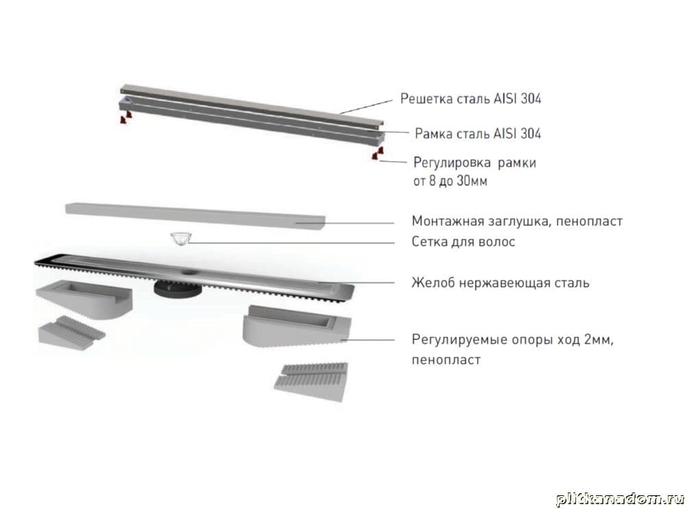 Berges B1 Keramik Душевой лоток 50, боковой выпуск, матовый хром