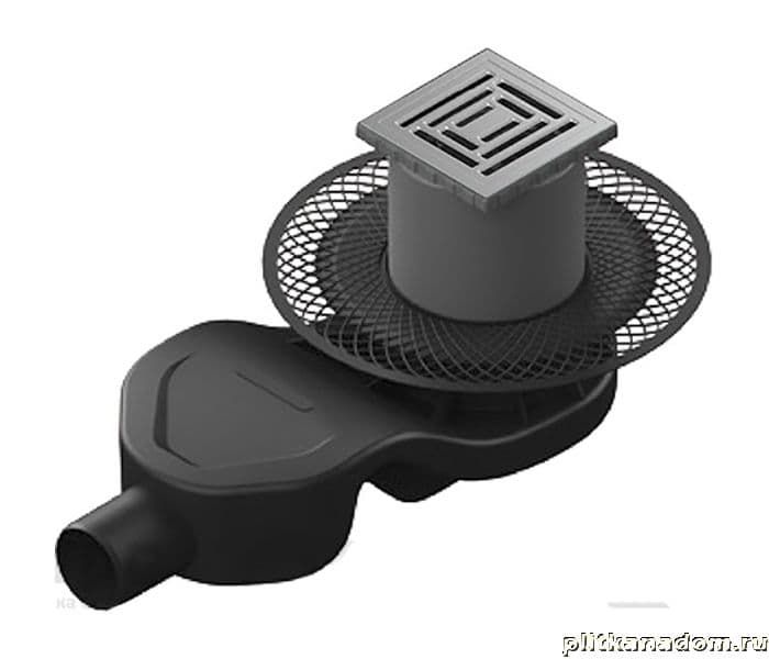 Berges Platz Uno Душевой трап 10х10, боковой выпуск, матовый хром
