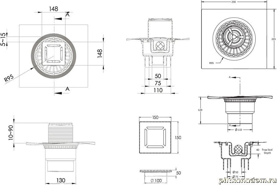 Berges Zentrum Norma Душевой трап 15х15, вертикальный выпуск, матовый хром
