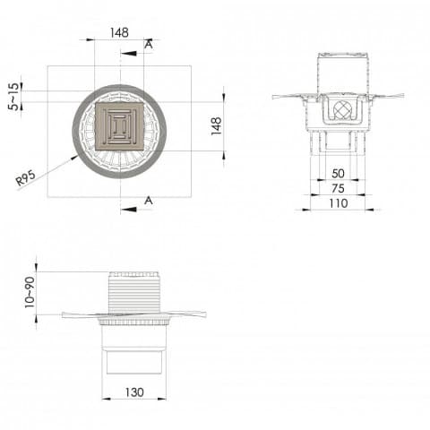 Berges Zentrum Uno 150х150 Сливной трап, матовый хром