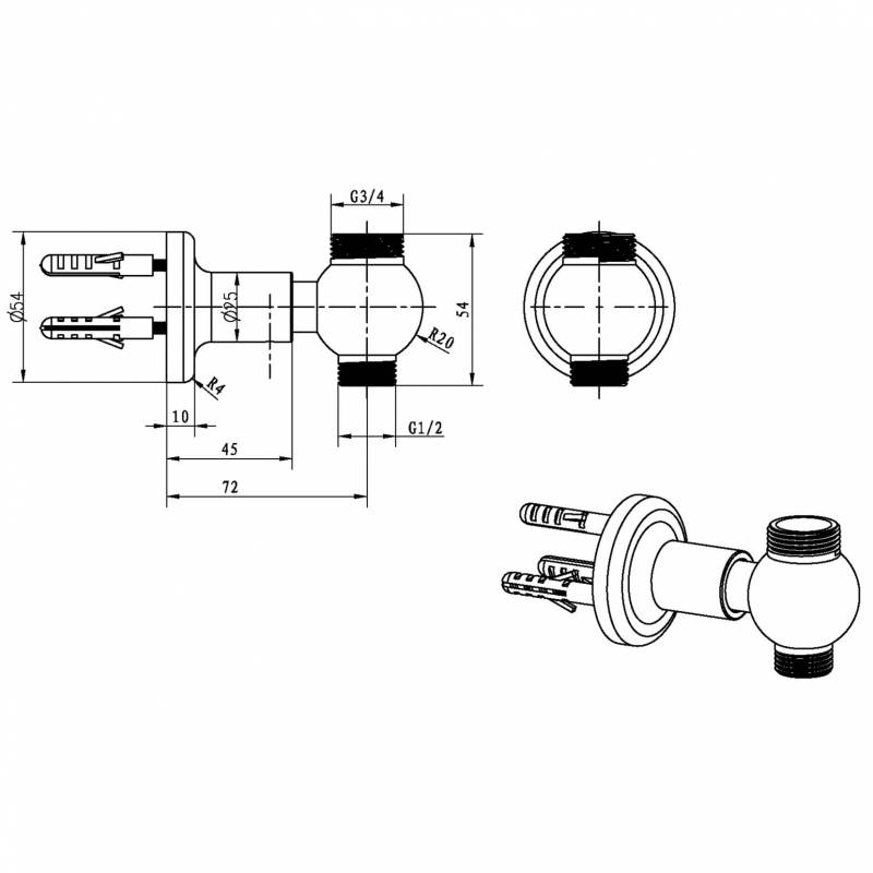 Boheme Imperiale 614 Штуцер для душевой стойки, Золото