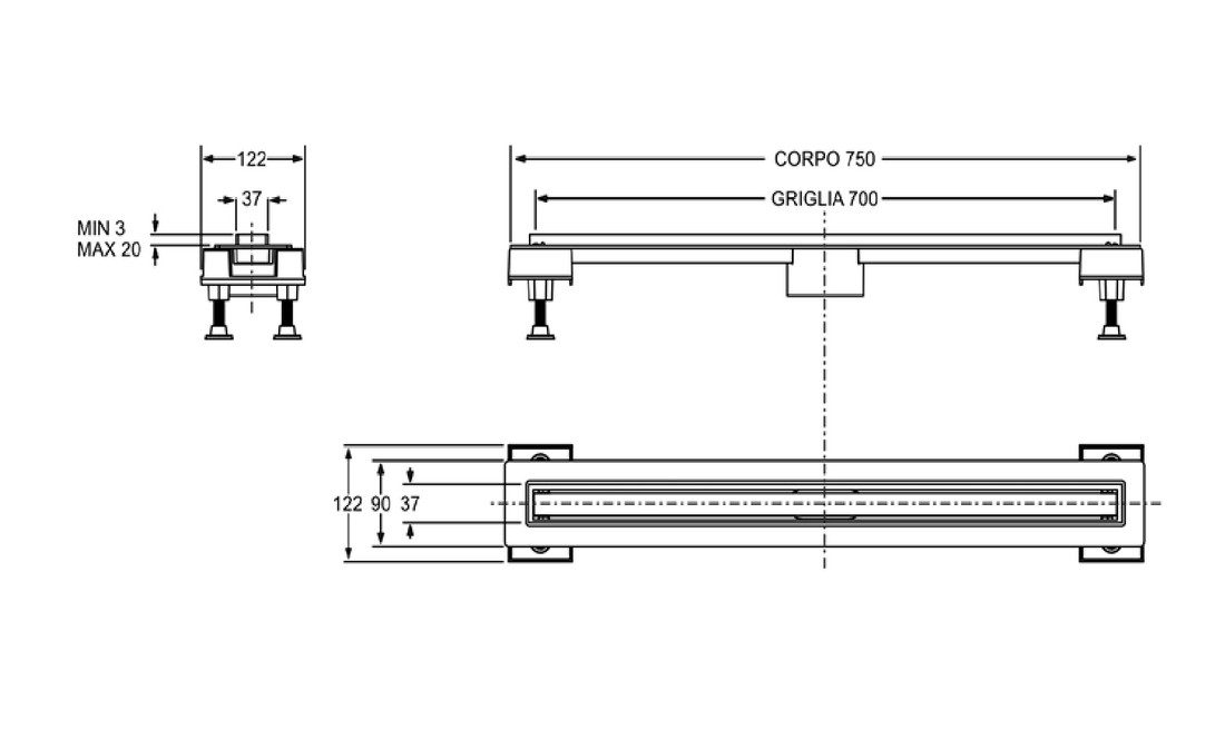 Душевой лоток Bonomini (6825WA70SWZ)