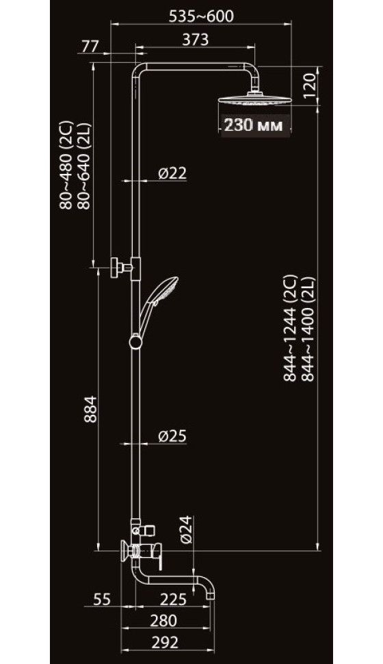 Elghansa 2306683-2L (Set-21-Chrome) Высокая душевая система