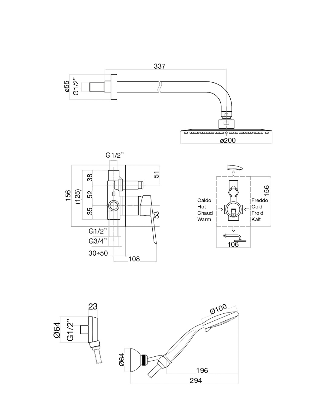 Fiore Kevon Black Matt 81NN7557 Душевая система, черный