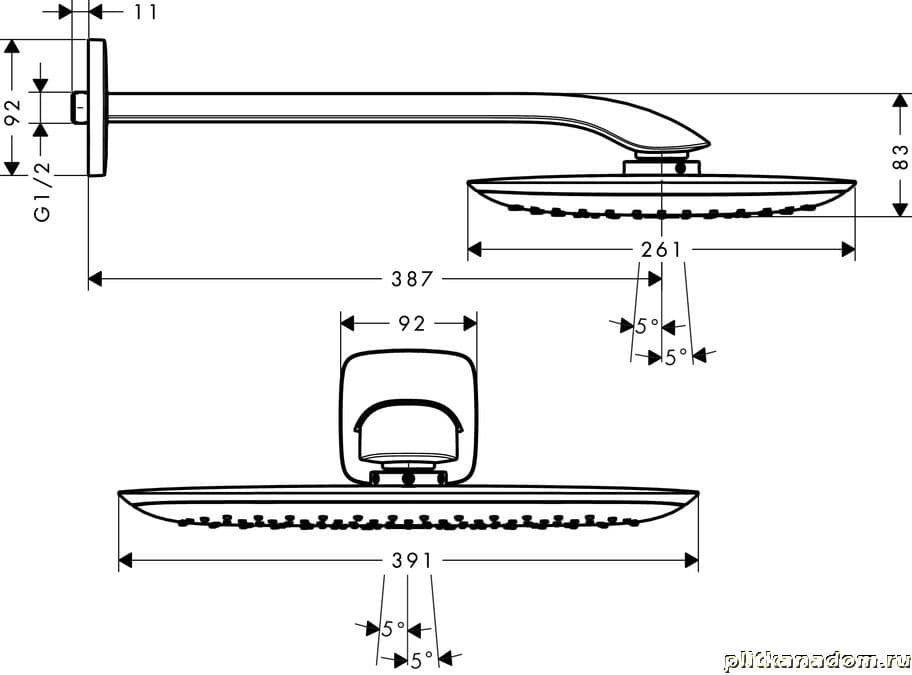 Hansgrohe PuraVida 27437400 верхний душ 400 мм, из стены
