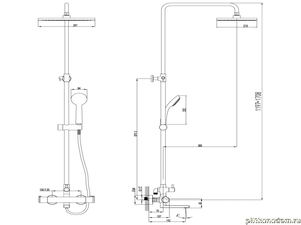 Lemark Yeti LM7862C Смеситель для ванны термостатический с верхней лейкой Тропический дождь, хром