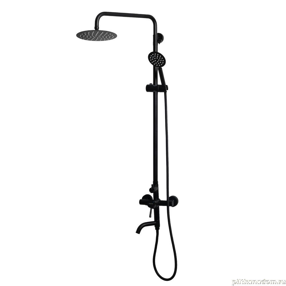 Душевая система Melana-610107B Tondo нерж.сталь, черный, с тропическим душем, лейкой и смесителем