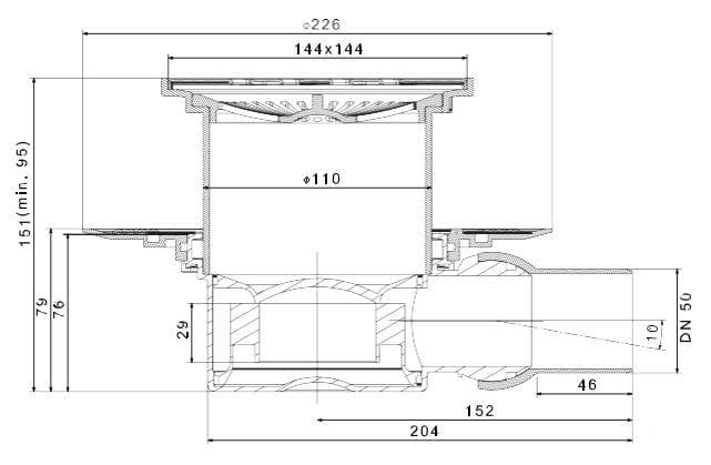 Трап водосток Pestan Confluo Standard Square 1 Gold 150*150 мм нержавеющая сталь 13000144