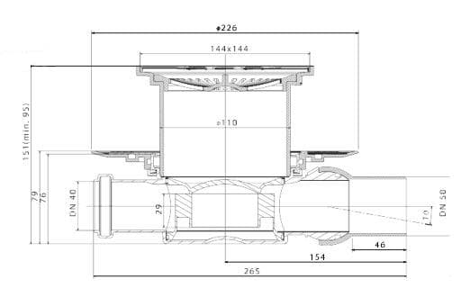 Трап водосток Pestan Confluo Standard Tide 3 150*150 мм нержавеющая сталь без рамки 13000003
