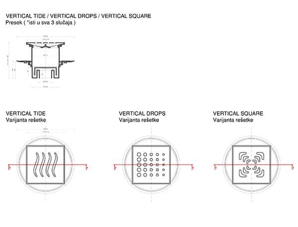 Трап водосток Pestan Confluo Standard Vertical Drops 150*150 мм нержавеющая сталь без рамки 13000020