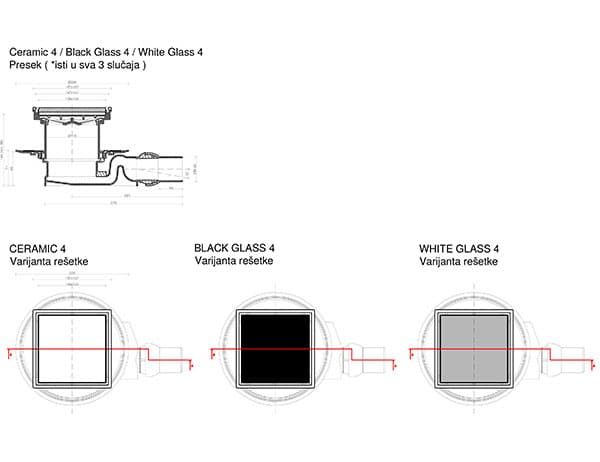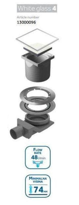 Трап водосток Pestan Confluo Standard White Glass 4 150*150 White Glass белое стекло с рамкой сталь 13000096