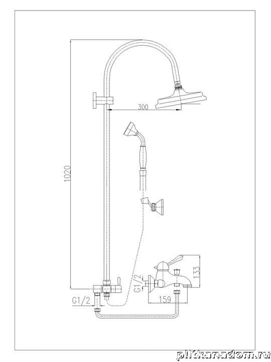 Rav Slezak Labe L054.5-3 Смеситель для ванны с головным душем, хром
