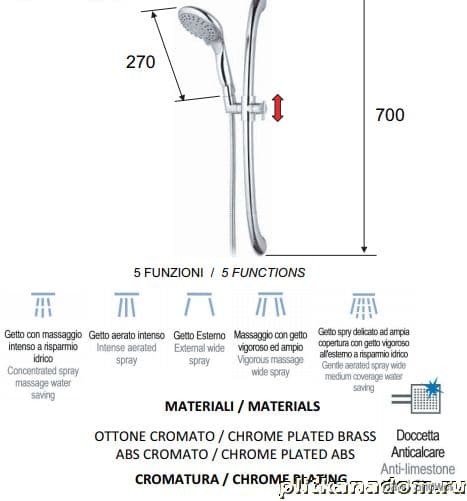 Remer Saliscendi 310M 318XF Стойка для ручного душа, в комплекте шланг и лейка