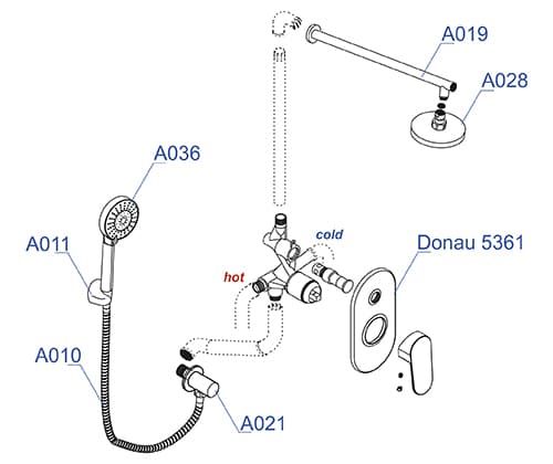 WasserKRAFT А14028 Встраиваемый комплект для душа с верхней душевой насадкой и лейкой