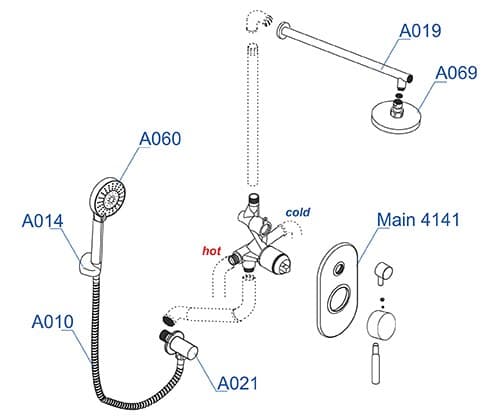 WasserKRAFT A16169 Встраиваемый комплект для душа с верхней душевой насадкой и лейкой